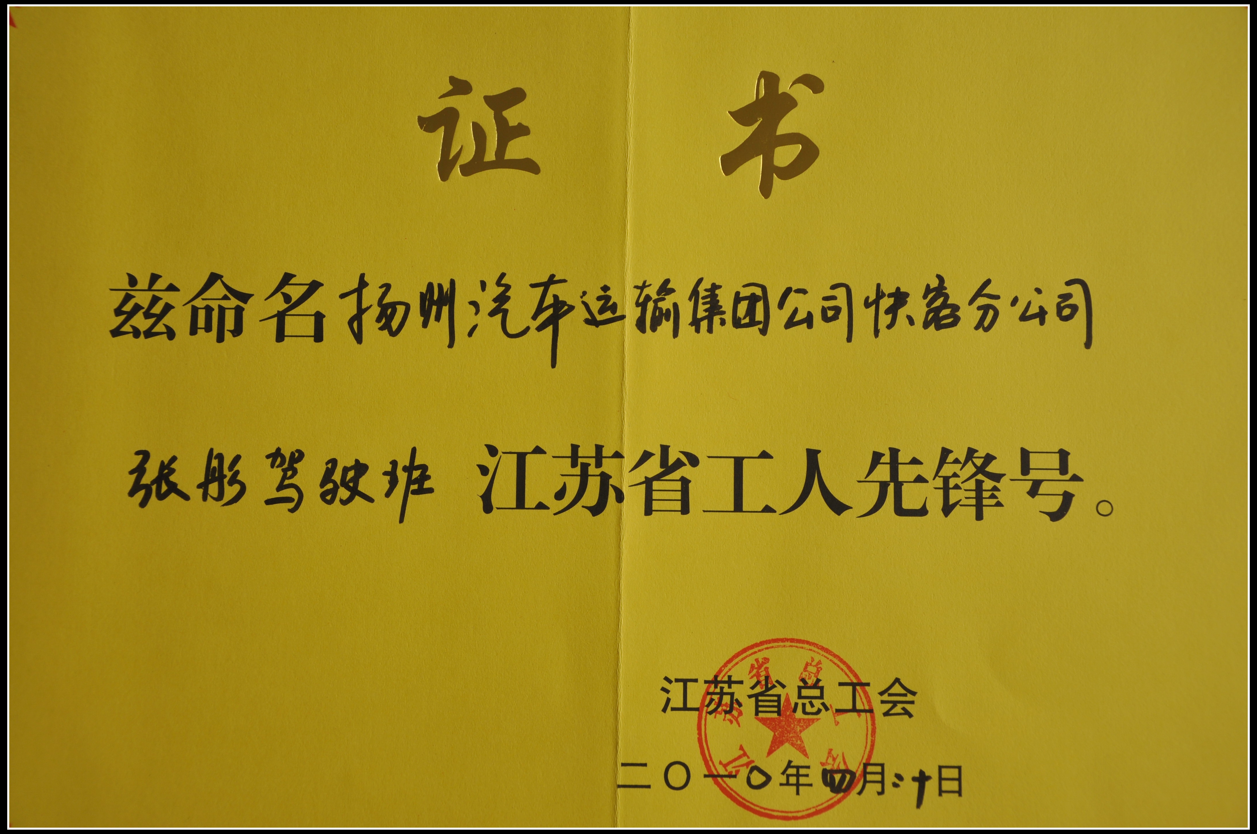 > 集團(tuán)公司快客分公司張彤駕駛班被江蘇省總工會(huì)評(píng)為工人先鋒號(hào)