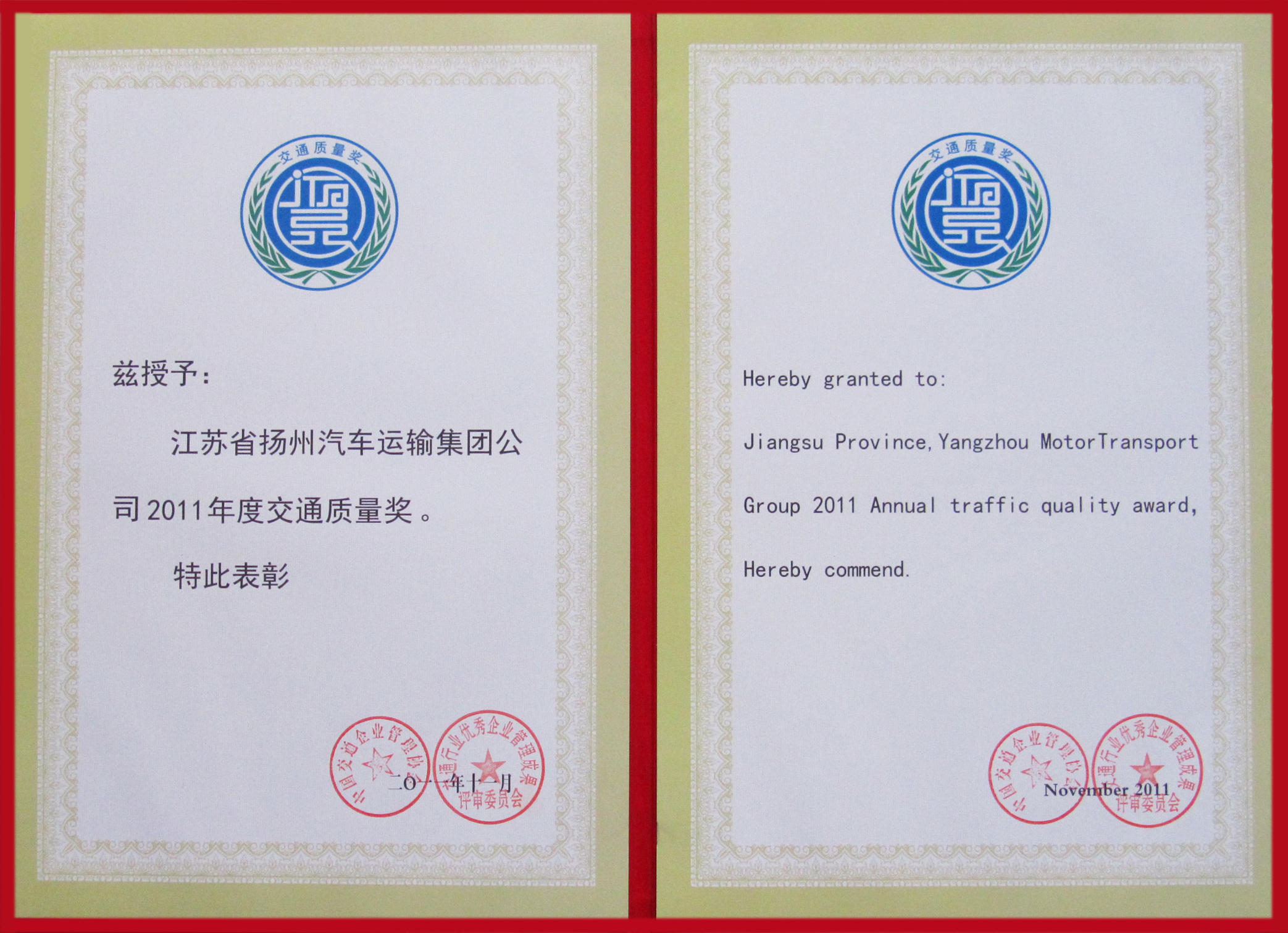 公司喜得交通質(zhì)量獎(jiǎng)