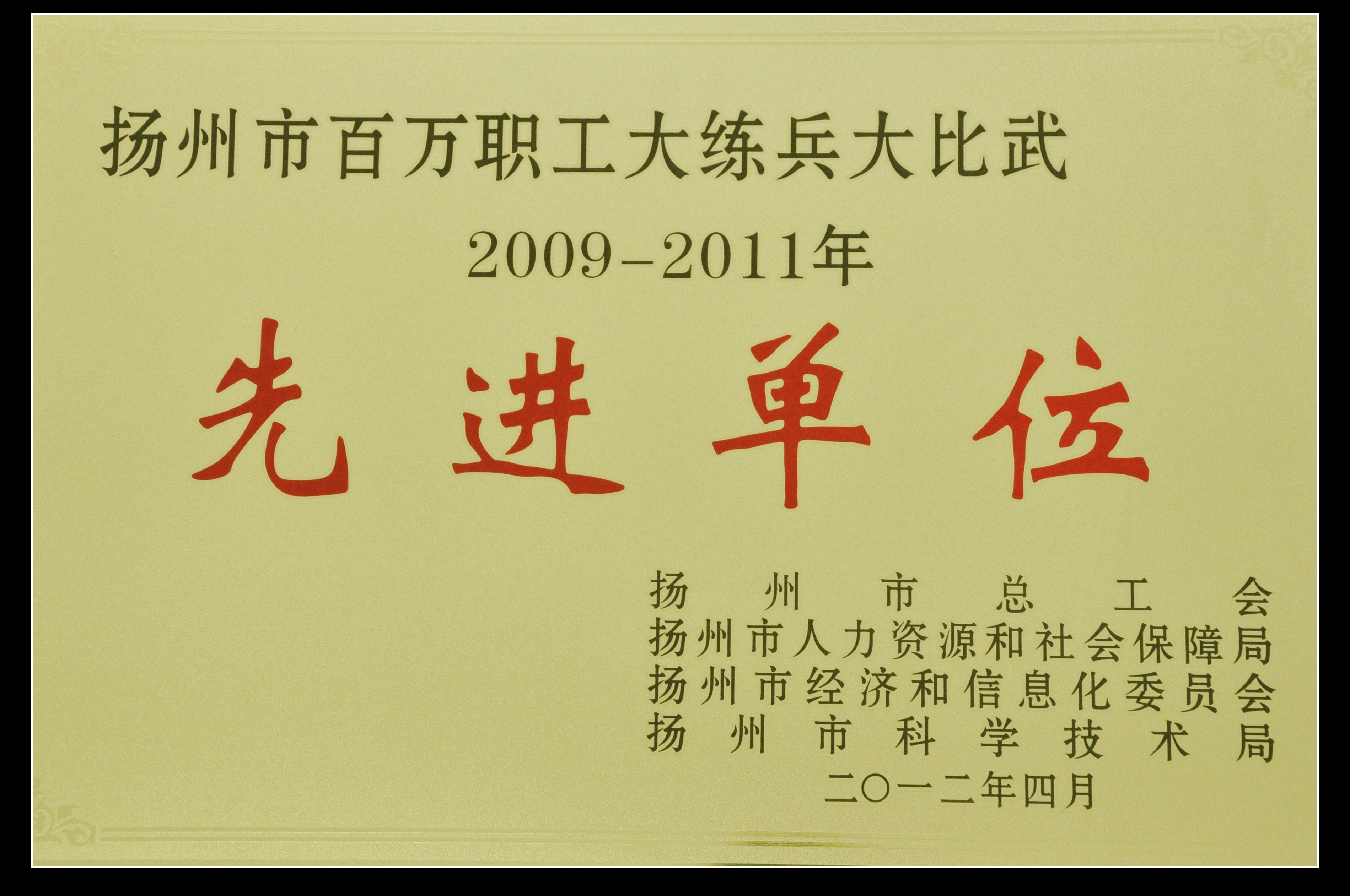 集團(tuán)公司獲揚(yáng)州市百萬職工大練兵大比武2009—2011年度先進(jìn)單位