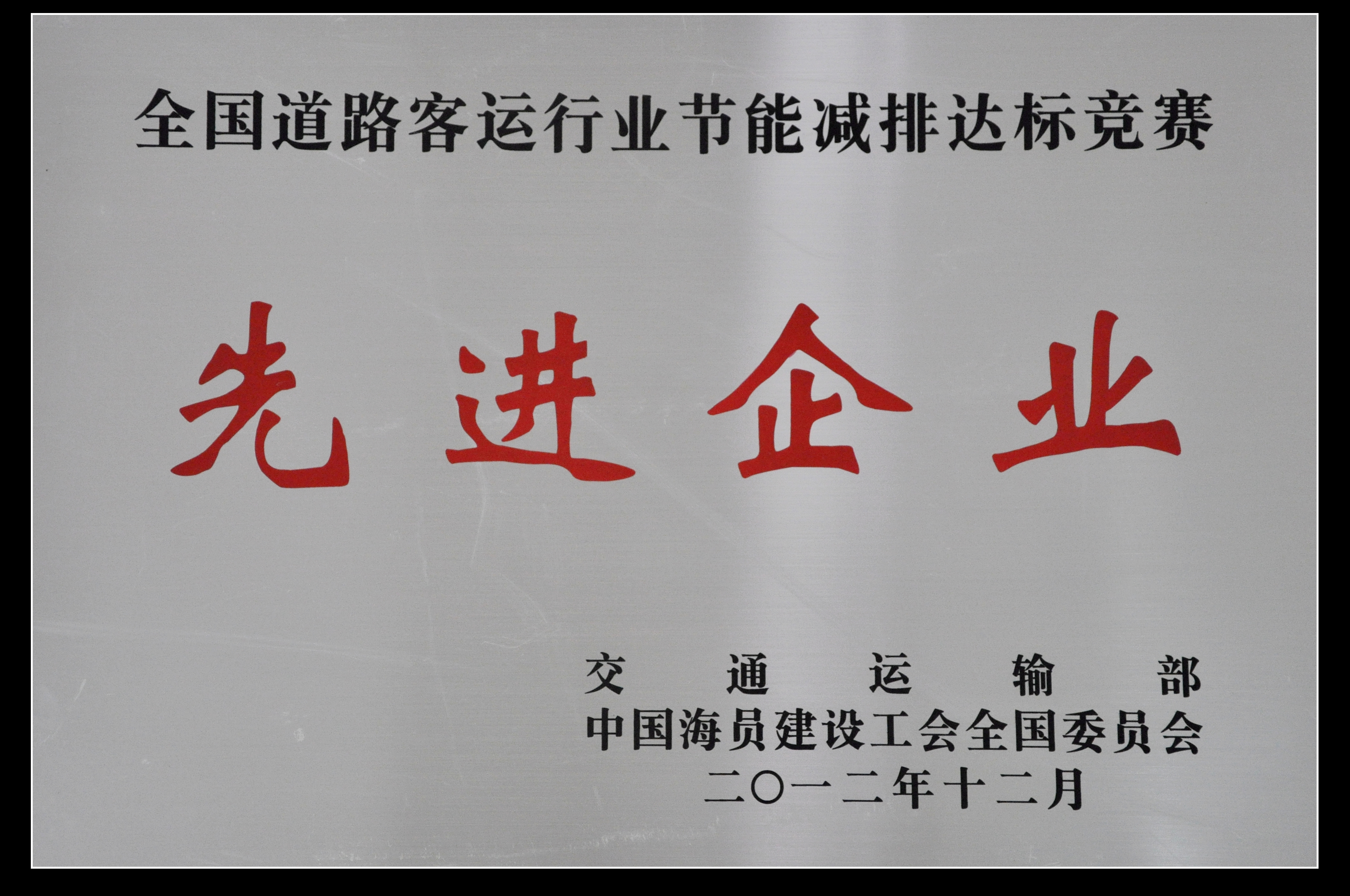 我司榮獲“全國(guó)道路客運(yùn)行業(yè)節(jié)能減排達(dá)標(biāo)競(jìng)賽先進(jìn)企業(yè)”稱(chēng)號(hào)