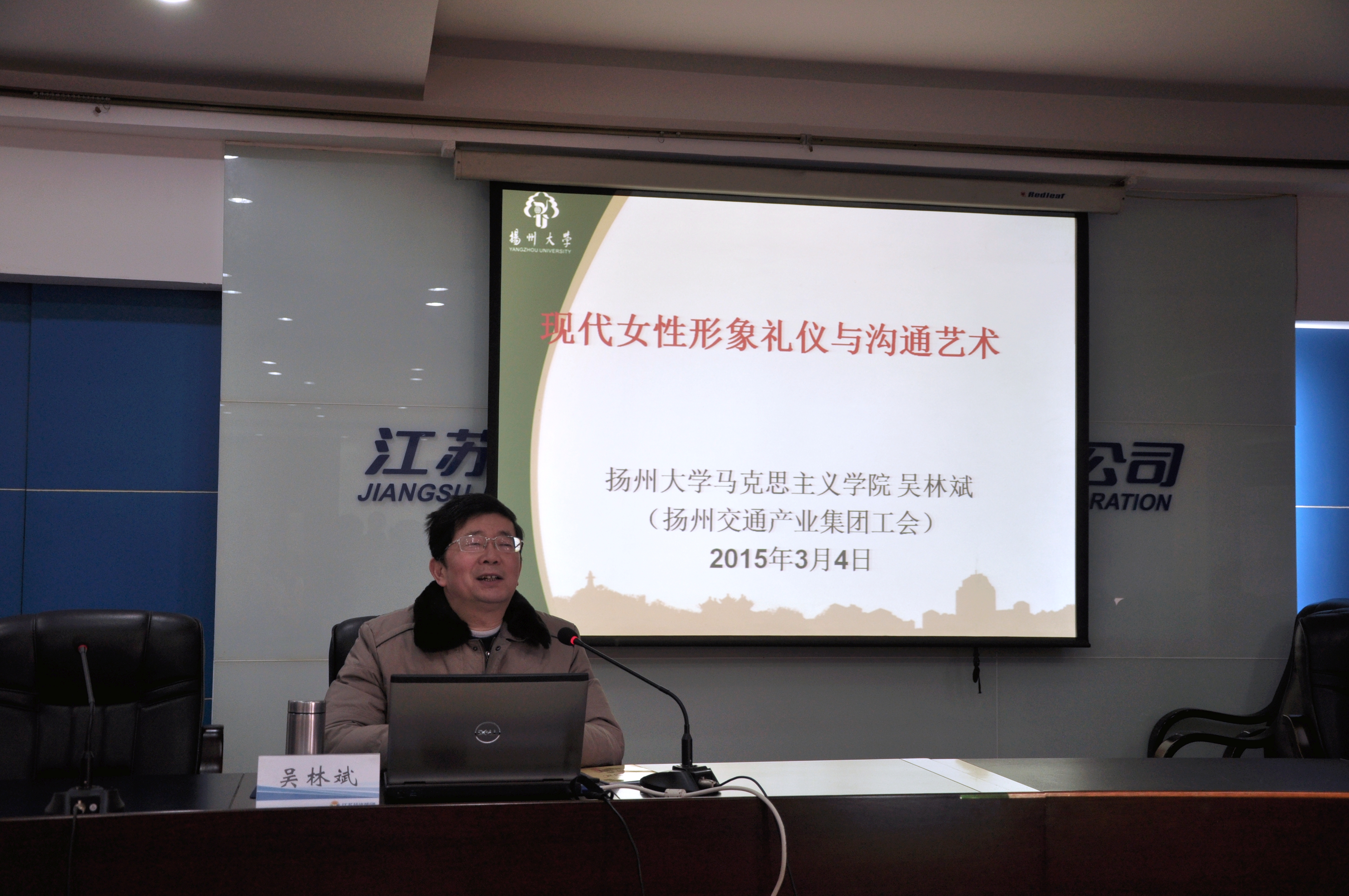 為迎接國際“三八”婦女節(jié)成立105周年,3月4日下午,市交通產業(yè)集團工會聯(lián)合會邀請揚州大學馬克思主義學院的吳林斌教授在我司七樓會議室舉辦“現(xiàn)代女性形象禮儀與溝通藝術”的專題講座,我司40余名女職工參加了講座。