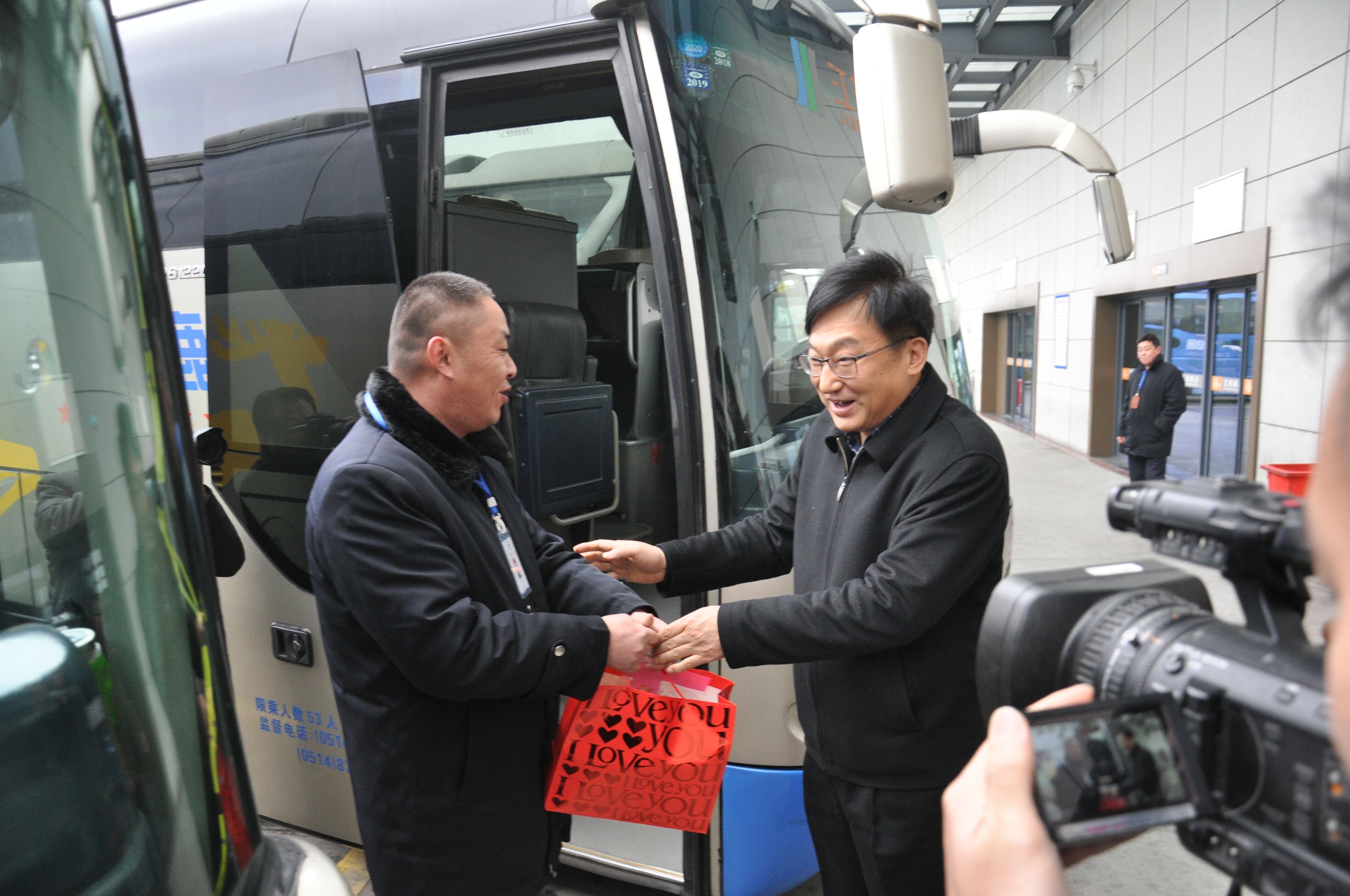 會議結(jié)束后,丁市長一行前往公交和揚汽的場站,對一線駕駛服務(wù)人員進行慰問。丁市長還登上揚汽的大巴車,給旅客送上了象征吉祥如意的桔子,祝福大家一路平安,闔家幸福。