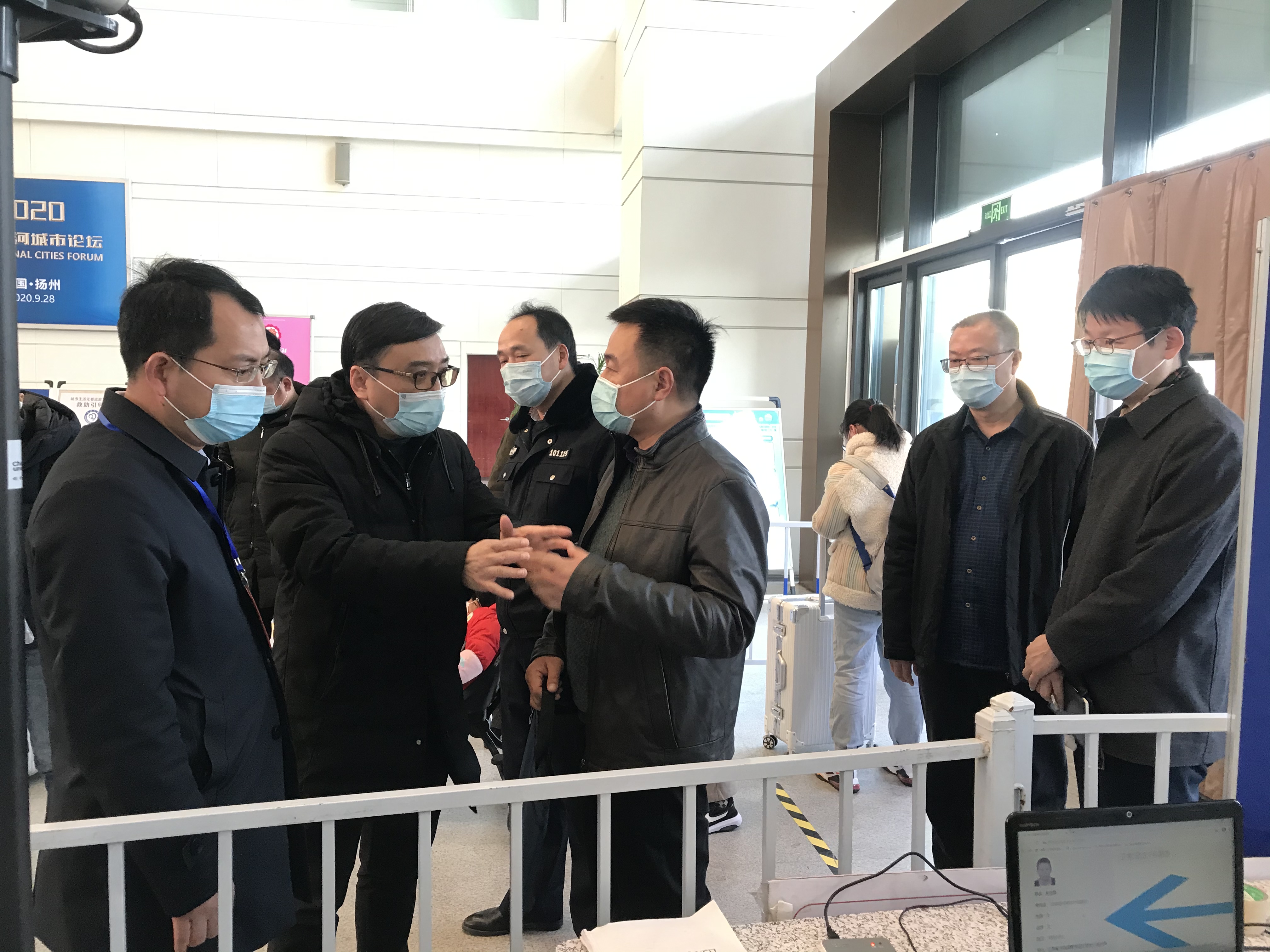 督查組先后對揚州站整個場站的消毒、進出站人員健康碼的查驗、對中高風險地區(qū)來揚人員身份信息的登記核實、對進出站體溫異常人員的處置及各類消毒臺賬進行了仔細檢查。檢查過程中對揚州站候車廳旅客口罩佩戴規(guī)范化提出要求,要求揚州站加強對旅客疫情防護意識的提醒和督查。