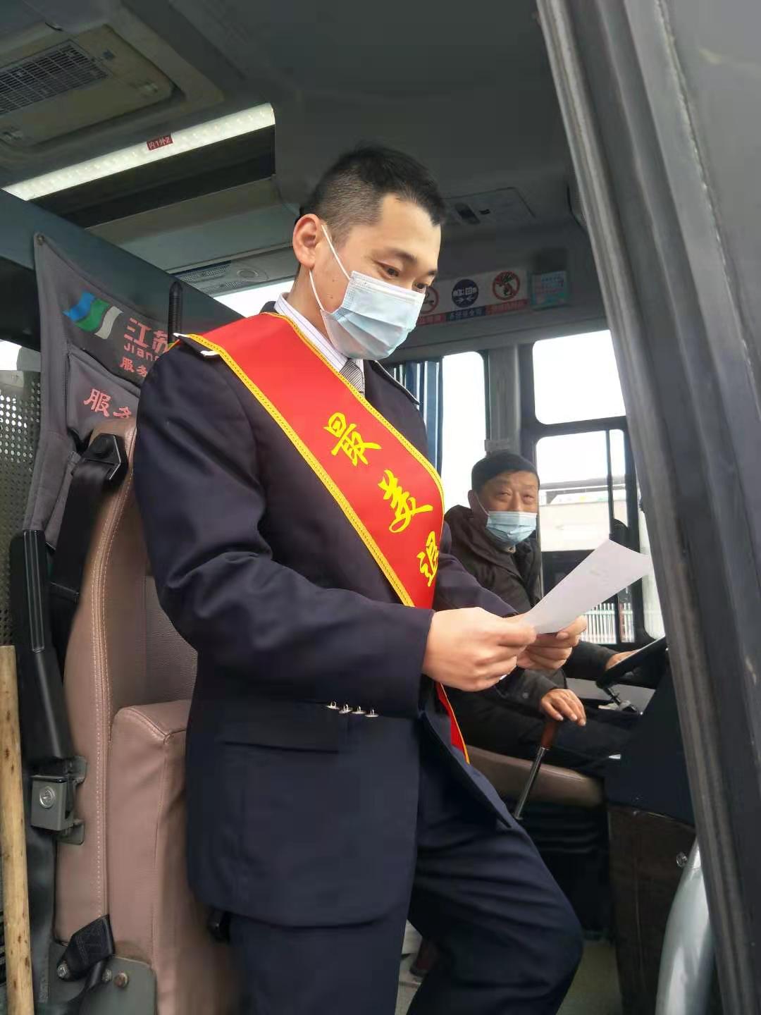 “您乘坐的車輛已經(jīng)消毒過,請放心上車…,老人家,你倆戴的口罩破了,我這有新的,請你換上…,請大家保持一米距離檢票,時間充裕,不會耽誤大家行程…,請大家檢票上車后,系帶好安全帶,口罩不能摘…”。一連串的溫馨提醒和戴著口罩仍在眉宇間“跳躍”著的笑容,讓旅客感到十分暖心?诓煌、手不停每天數(shù)百遍地完美重復(fù)為旅客服務(wù)的場景,正是她幾年軍營生活、過硬作風(fēng)養(yǎng)成的積淀,更是她退役轉(zhuǎn)崗后,愛崗敬業(yè)的生動寫照。前幾日的一天下午,有位蘇州的旅客一旁候車時,看到當(dāng)班吳琳檢票發(fā)車時嫻熟的連貫動作和麻利果斷指揮發(fā)車標(biāo)準(zhǔn)旗語手勢時,情不自禁地掏出手機,“啪差…”拍個不停,嘴里還自言自語道:“這個畫面好,這個畫面好…”。