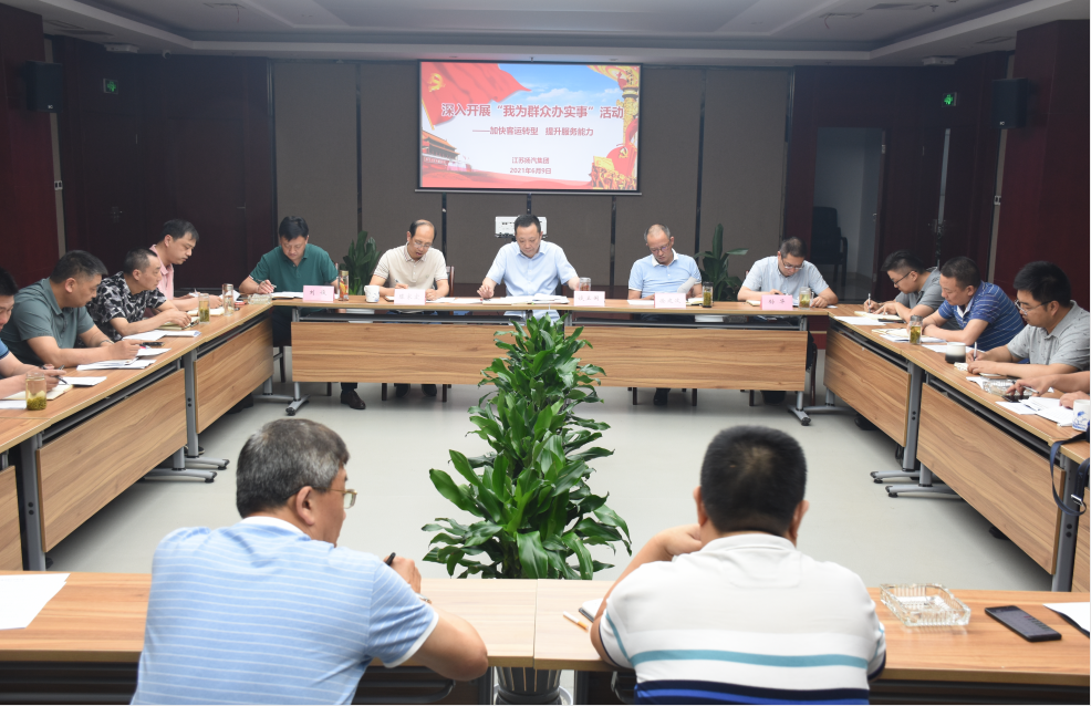 6月9日下午,揚汽集團在西部樞紐436會議室舉辦以“加快客運轉型,提升服務能力”為主題的“我為群眾辦實事”集體調研活動;顒佑蓳P汽集團副董事長、黨委副書記、總經理談衛(wèi)國主持,集團班子成員、職能部室負責人、客運單位黨政主要負責人和生產經理參加調研活動。