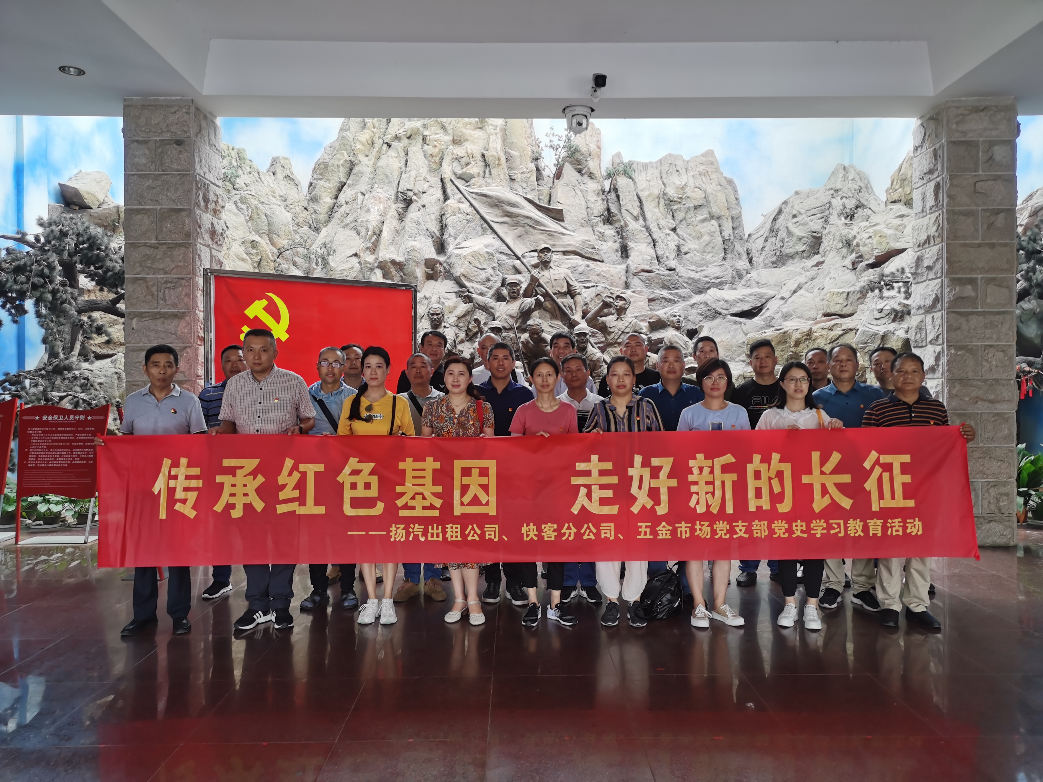 為豐富黨史學(xué)習(xí)教育形式,進(jìn)一步提升學(xué)習(xí)效果,7月16日,揚(yáng)汽出租、快客分公司、五金市場(chǎng)黨支部聯(lián)合組織20余名黨員赴鎮(zhèn)江茅山新四軍紀(jì)念館開(kāi)展“傳承紅色基因 走好新的長(zhǎng)征”主題黨日活動(dòng)。