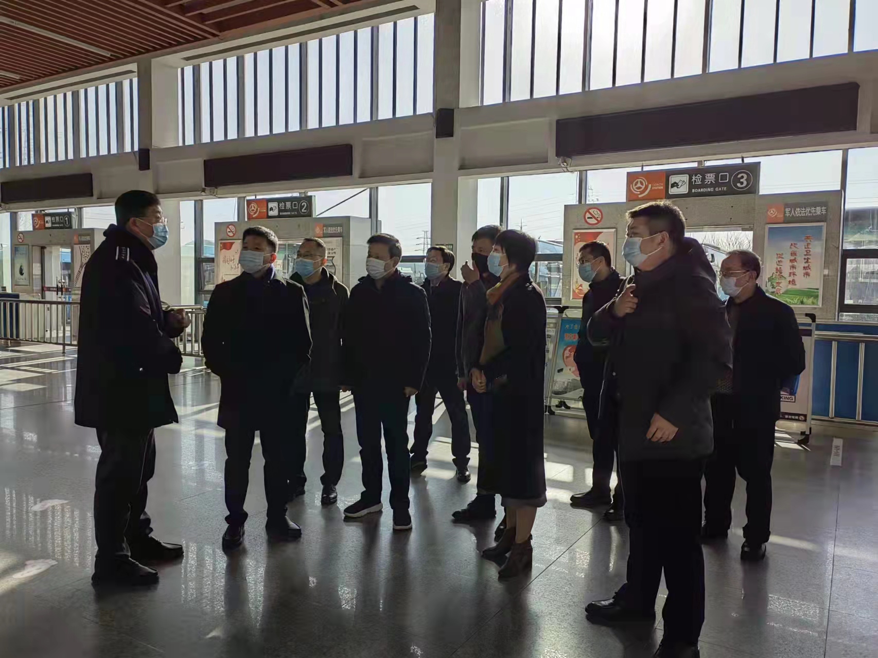 朱定金強(qiáng)調(diào),春節(jié)假期接近尾聲,返程高峰即將到來(lái),車站旅客人數(shù)將有所增加,值班值守的人員要繼續(xù)堅(jiān)守崗位,做好個(gè)人防護(hù),同時(shí)注意防寒防暖。車站要扎實(shí)做好春節(jié)各項(xiàng)安全防范工作,牢固樹(shù)立客運(yùn)站的安全發(fā)展理念,疫情防控工作時(shí)刻不能松懈,嚴(yán)格按照規(guī)定對(duì)場(chǎng)站、車輛進(jìn)行通風(fēng)消毒,嚴(yán)查旅客健康碼和體溫檢測(cè),提醒旅客全程規(guī)范佩戴口站、落實(shí)好“一米線”等要求。常態(tài)化疫情防控下的春運(yùn),車站服務(wù)不能打折扣,用心守護(hù)好江都的大門,讓旅客出行變的更有溫度。