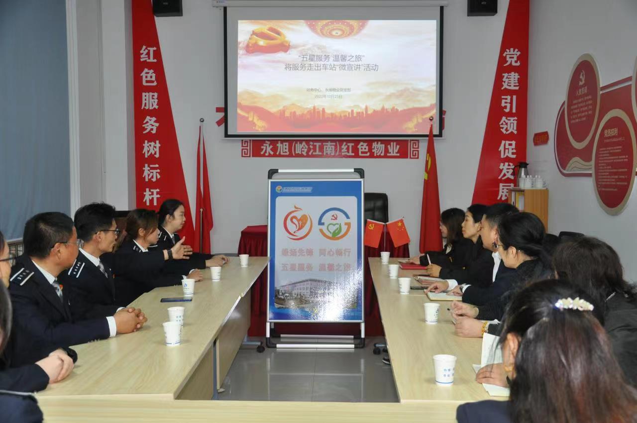 為進(jìn)一步發(fā)揮黨建引領(lǐng)作用,以黨建引領(lǐng)雙方資源共享、優(yōu)勢互補(bǔ),共同提高黨建和服務(wù)水平,10月25日下午,揚(yáng)汽集團(tuán)站務(wù)中心黨支部與永旭物業(yè)黨支部開展“五星服務(wù) 溫馨之旅”黨建共建活動,揚(yáng)汽集團(tuán)站務(wù)中心、永旭物業(yè)雙方相關(guān)負(fù)責(zé)人及工作人員參加活動。