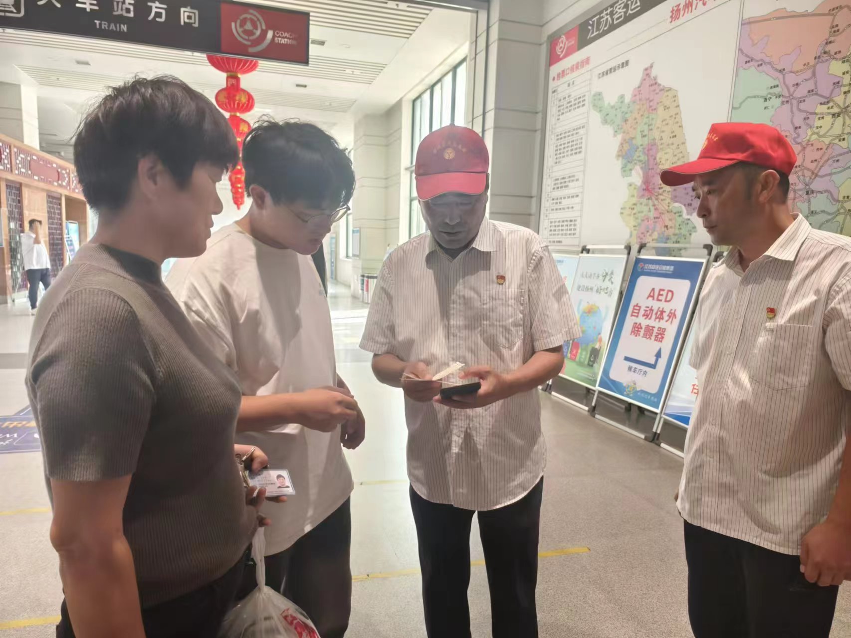 志愿者們有序在車(chē)站的售票廳、候車(chē)廳、安檢處、發(fā)車(chē)平臺(tái)等崗位為旅客提供文明勸導(dǎo)、秩序維護(hù)、行李搬運(yùn)、茶水服務(wù)等志愿服務(wù),并耐心解答旅客的每一個(gè)問(wèn)題,細(xì)心指引旅客前往購(gòu)票窗口、候車(chē)區(qū)、檢票口等關(guān)鍵位置,確保每一位旅客都能順利、愉快地踏上旅程。針對(duì)老弱病殘?jiān)械戎攸c(diǎn)旅游群體,志愿者們熱情為其提供“一對(duì)一”重點(diǎn)幫扶,全力保障旅客群體安全便捷出行。在揚(yáng)州汽車(chē)站候車(chē)大廳、汽車(chē)東站服務(wù)臺(tái)均設(shè)立了黨員示范崗,黨員志愿者們亮明身份,主動(dòng)接受旅客監(jiān)督。