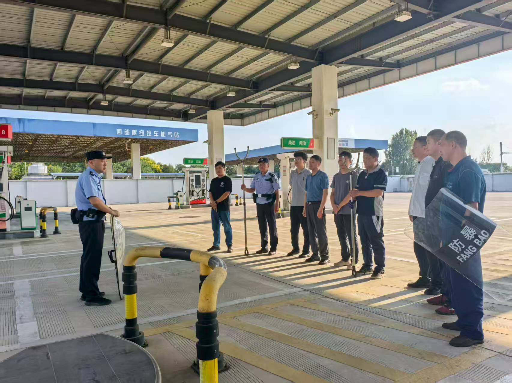 演練前期,雙方周密部署,制定了詳實(shí)的演練方案,明確了崗位職責(zé)與處置流程。車站派出所民警結(jié)合加油站實(shí)際,對參演人員開展了反恐知識及防護(hù)技能的系統(tǒng)培訓(xùn)。演練模擬“恐怖分子”強(qiáng)行闖入加油站的突發(fā)場景,F(xiàn)場配備盾牌、防刺背心等專業(yè)裝備,營造出高度緊張的實(shí)戰(zhàn)氛圍,有效檢驗(yàn)了人員的應(yīng)急反應(yīng)與協(xié)同處置能力。